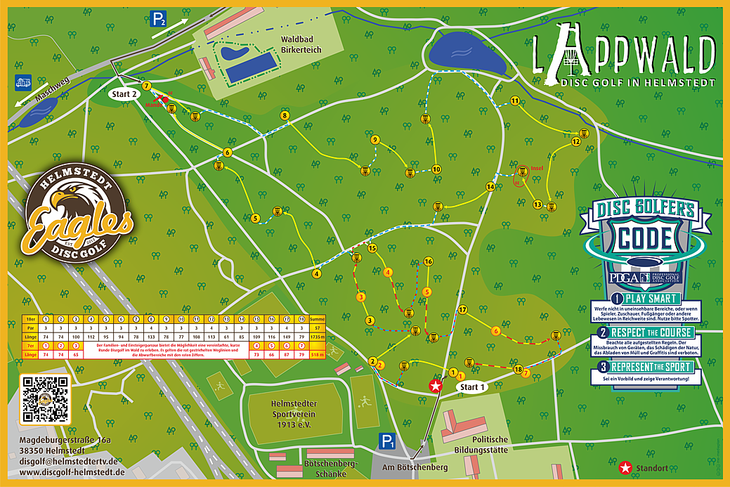 Der Lappwald-Parcours am Bötschenberg ist der technisch anspruchsvolle Waldkurs der „Helmstedt Eagles“. Die Anlage liegt im Lappwald oberhalb von Helmstedt, in der Nähe des HSV-Sportplatzes, des Waldbads Birkerteich und der Politischen Bildungsstätte. Startpunkt ist in der Regel der Abwurf der Bahn 1 am Waldweg „Am Bötschenberg“ (Adresse: Am Bötschenberg 2, 38350 Helmstedt). Die Körbe sind durch Hinweispfeile miteinander verbunden, sodass sich der Weg durch den Waldparcours gut erschließen lässt. Die Nutzung des Parcours ist kostenlos.