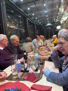 Nach leckerem Essen und dem obligatorischen Ouzo wurde es knifflig: Beim Weihnachtslieder-Raten konnten die Teilnehmenden ihr Wissen unter Beweis stellen und sich über kleine Preise freuen. So manche*r überraschte dabei mit erstaunlicher Textsicherheit in der „Weihnachtslied-Branche“. Anschließend zog das Glücksrad durch die Reihen. Wer genügend Kleingeld dabeihatte, durfte drehen und auf weitere Gewinne hoffen. Besonders unsere jüngsten Gäste hatten große Freude daran, für andere mitzudrehen und selbst den einen oder anderen Preis zu ergattern. Die strahlenden Kinderaugen trugen ihren Teil zur festlichen Stimmung bei.